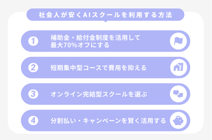 - 補助金を使って費用を抑えたい社会人