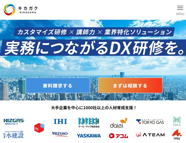 AI教育企業として有名なキカガクは、AI導入+人材育成の両面から企業を支援します。