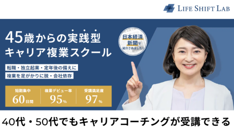 ライフシフトラボは、40代・50代などミドル層に特化したキャリアコーチングサービスです。