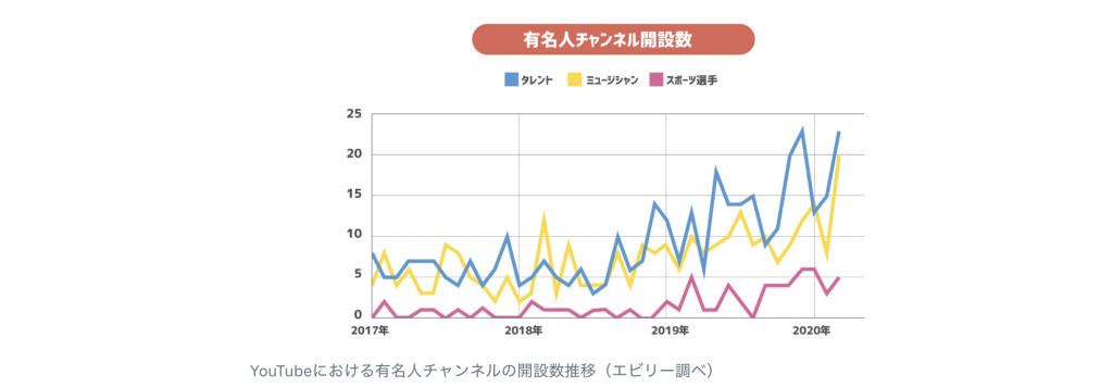 さらに、以下のデータでわかるように芸能人がYouTubeに参入してきました。
