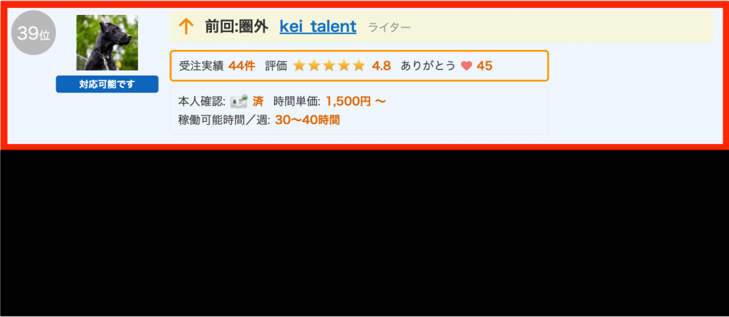kei_talentさんは、2022年12月の4週にクラウドワークスの契約ランキングの総合で39位になりました。
