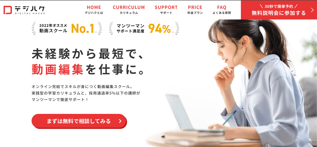 もしあなたが手厚いサポートのある動画編集スクールを必要としているのであれば、サポートの手厚い「デジハク」を利用することをおすすめします。